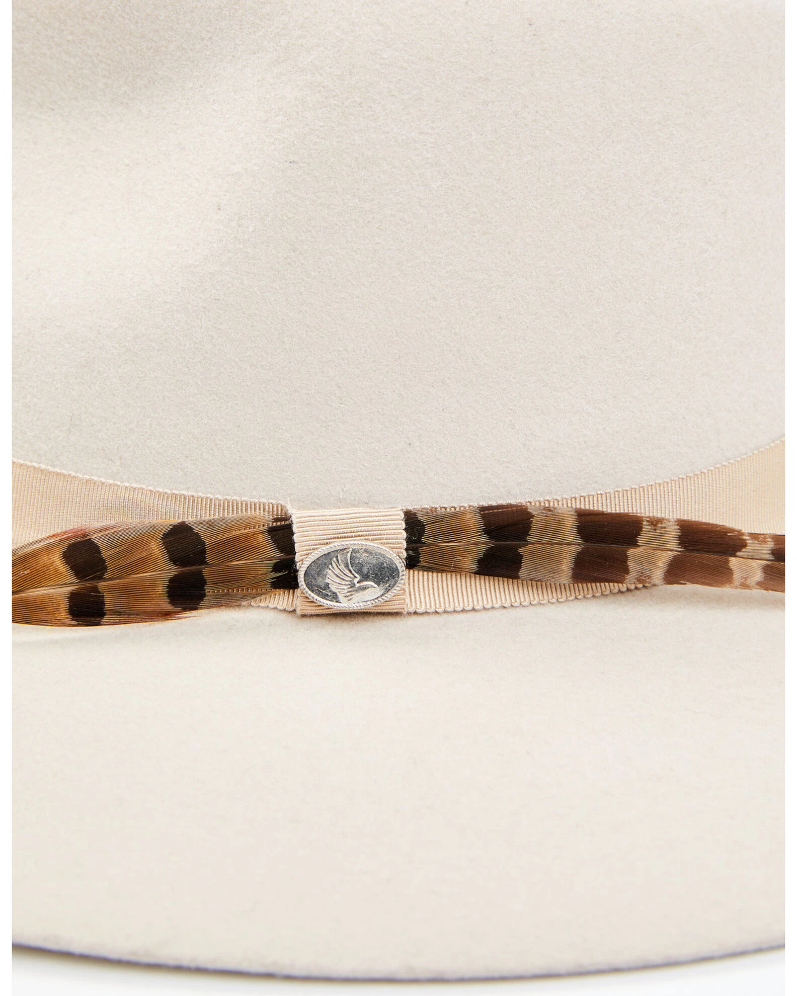 - 9 line ribbon hat band with feather and logo buckle