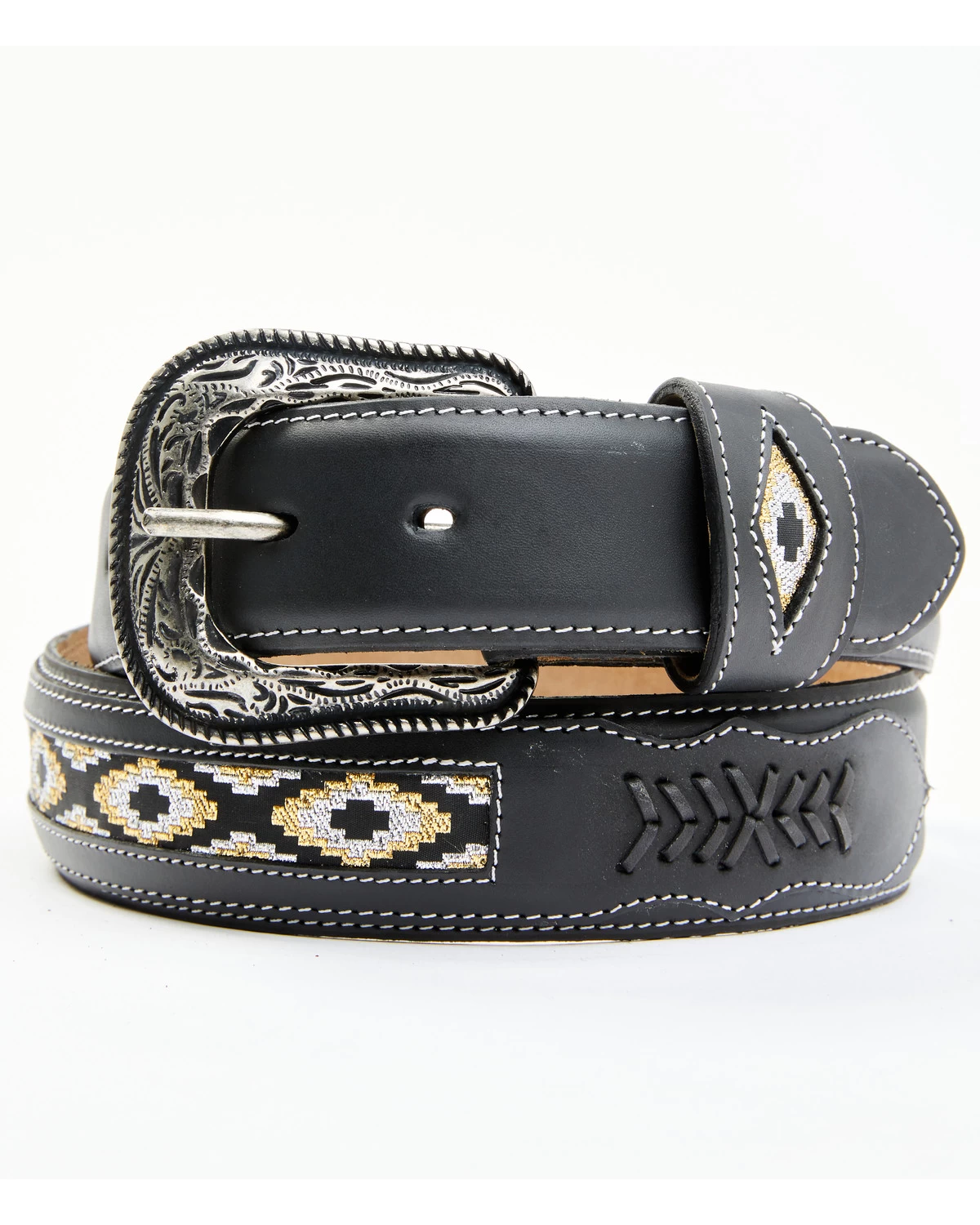Cody James Men’s Black Southwestern Center Inlay Western Belt