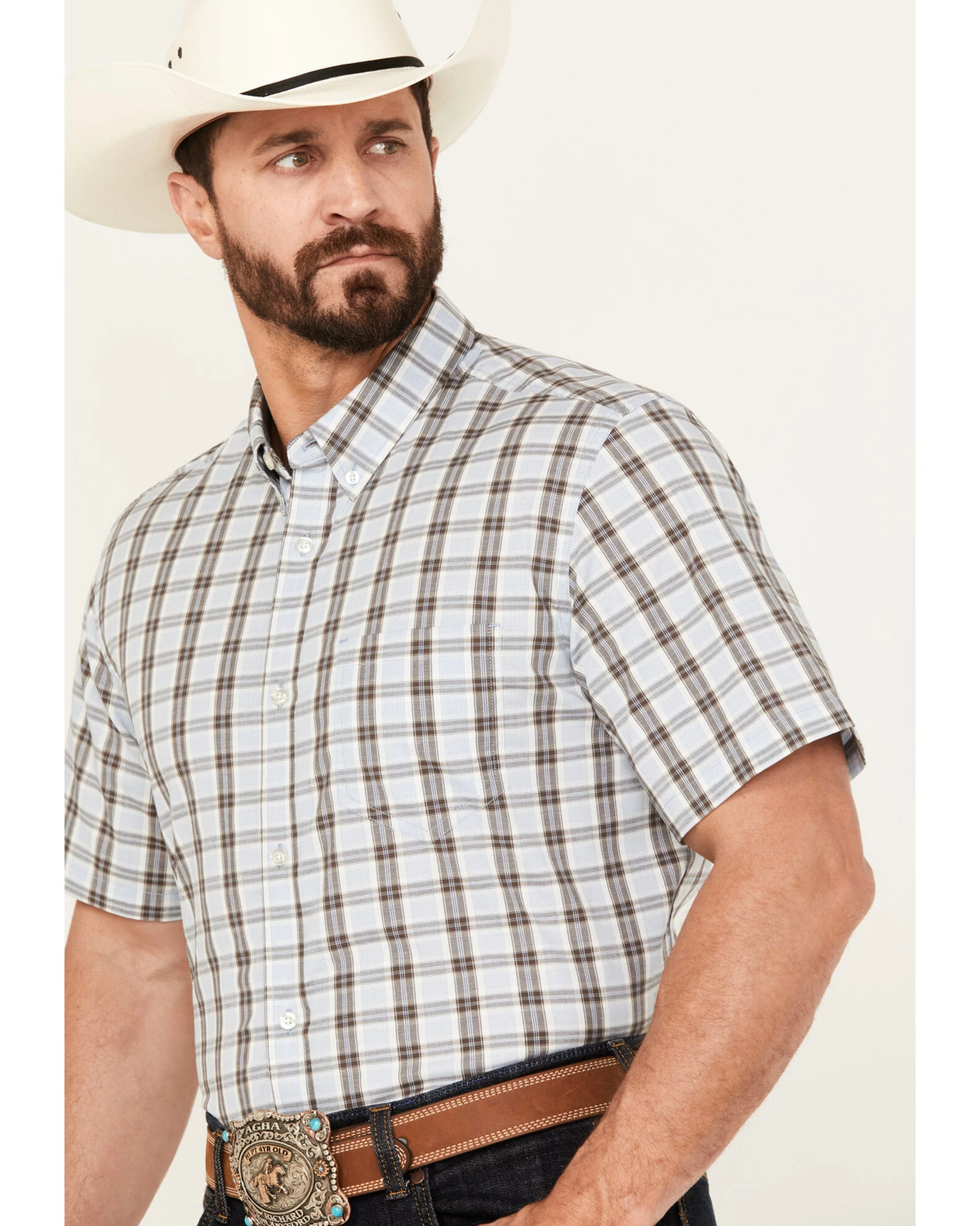 Cody James Men’s Bryce Plaid Print Short Sleeve Button-Down Stretch Western Shirt –Â Big