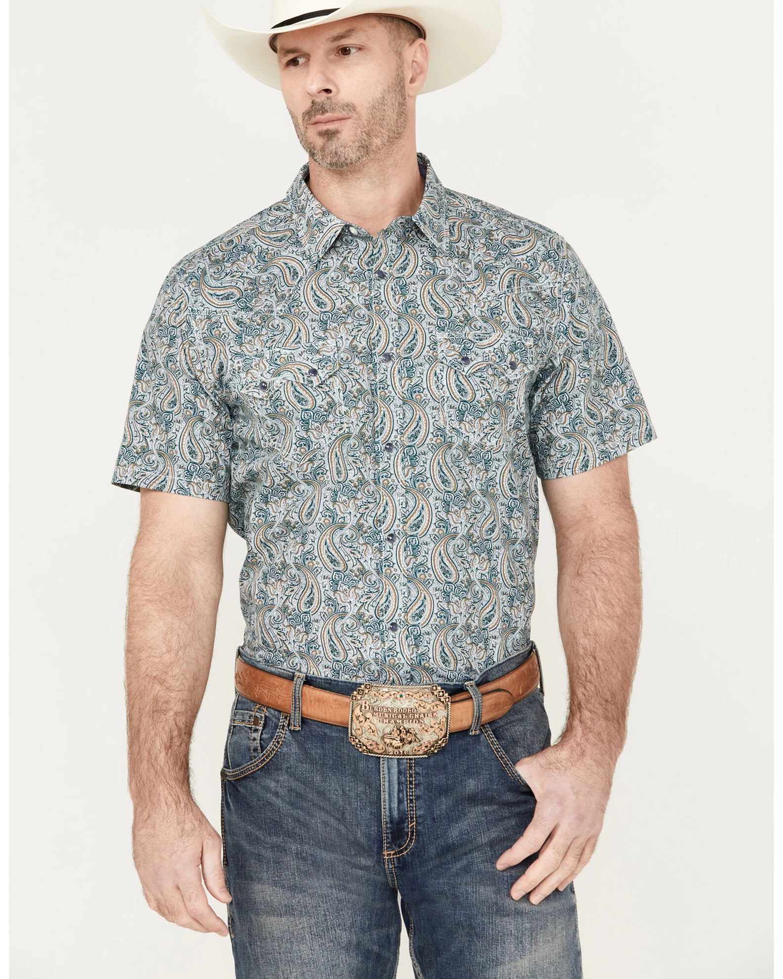 Cody James Men’s Crazy Days Paisley Print Short Sleeve Western Snap Shirt