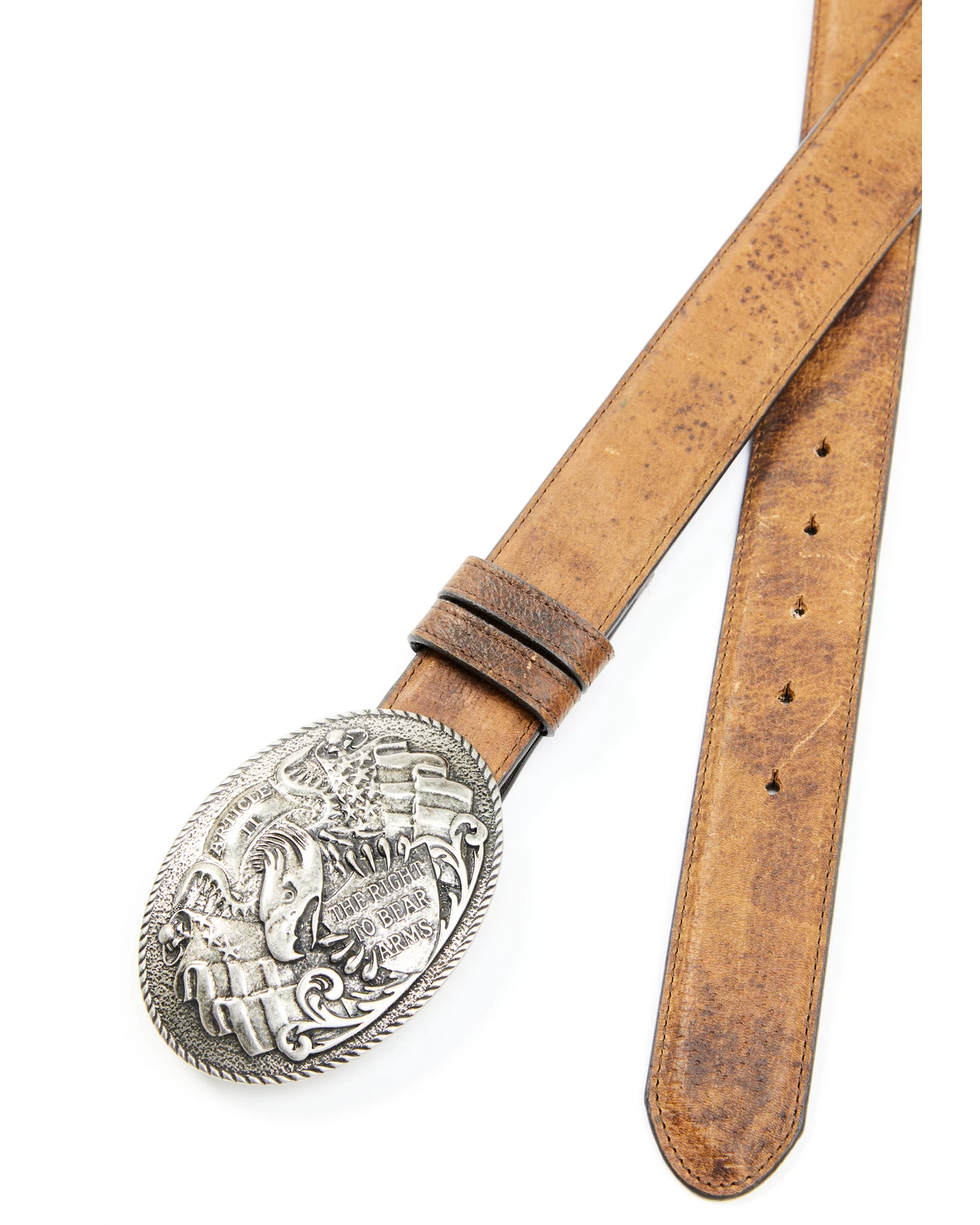 - Oval plate buckle with embossed eagle and flag patriotic details